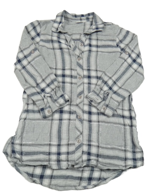 Šedo-bílo-tmavomodro-stříbrné kostkované propínací košilové šaty Next