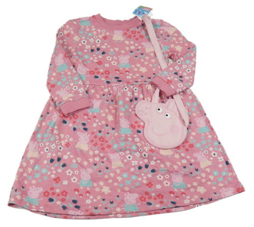 Nové - 2set - Růžové květované teplákové šaty s Peppou + kabelka Nutmeg