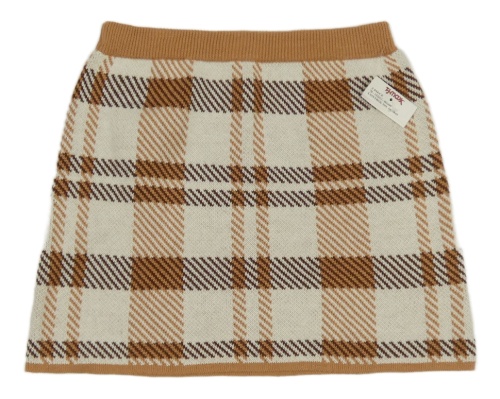 Nové - Smetanovo-hnědo-okrová kostkovaná pletená sukně