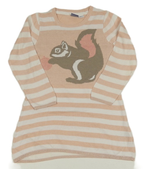 Světlerůžovo-bílé pruhované svetrové šaty s veverkou Lupilu