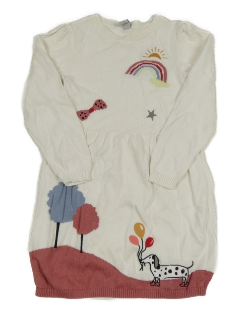 Bílé svetrové šaty s duhou a psem Tu