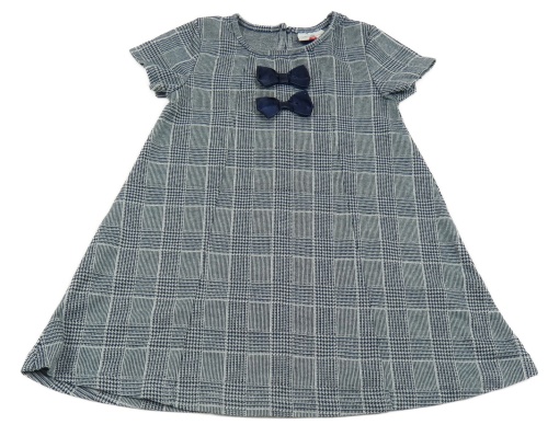 Tmavomodro-šedé kostkované šaty s mašlemi Topolino