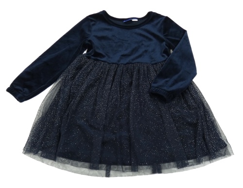 Tmavomodré plyšovo/tylové šaty se třpytivými puntíky lupilu