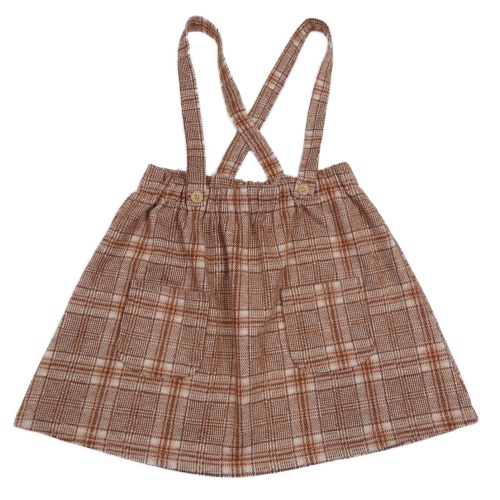 Hnědo-starorůžovo-bílá kostkovaná vzorovaná úpletová sukně s kšandami George