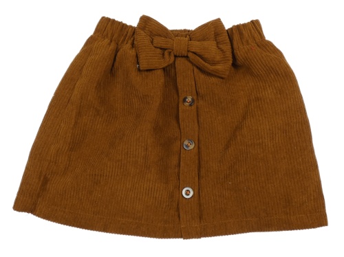 Hnědá žebrovaná sukně s knoflíky a mašlí Shein