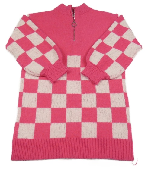 Růžové kostkované svetrové šaty