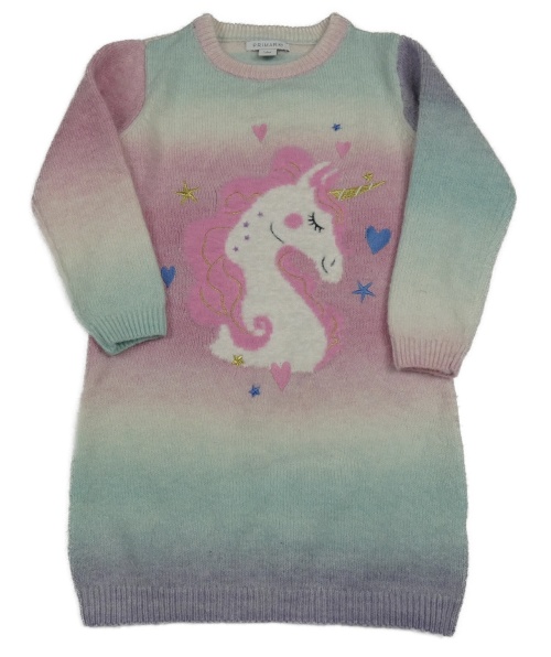 Růžovo-mátovo-fialové pletené šaty s jednorožcem Primark