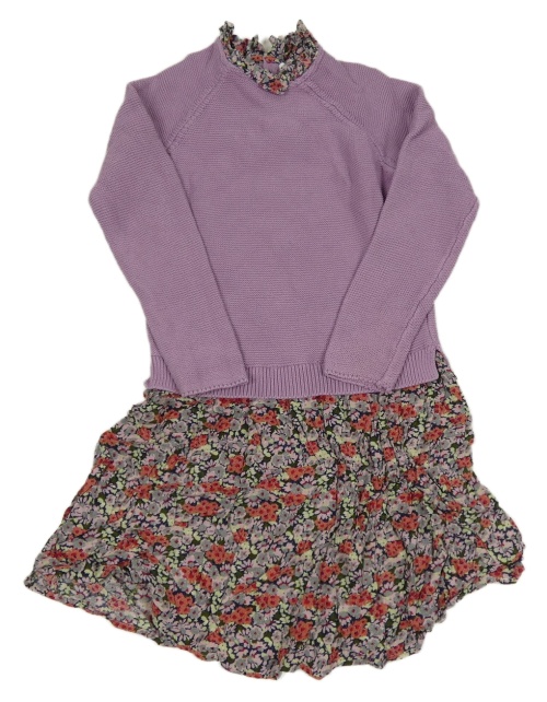 Lila-tmavomodro-barevné svetrové šaty s květovanou sukní a límečkem Next