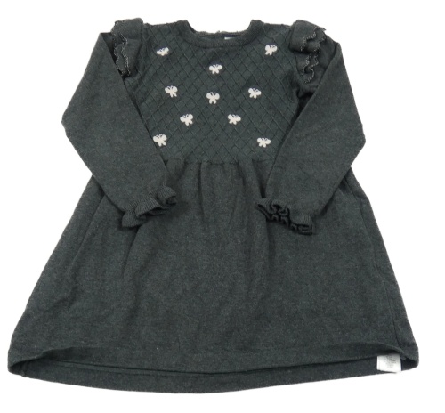 Tmavošedé svetrové šaty s motýlky a volánky Primark