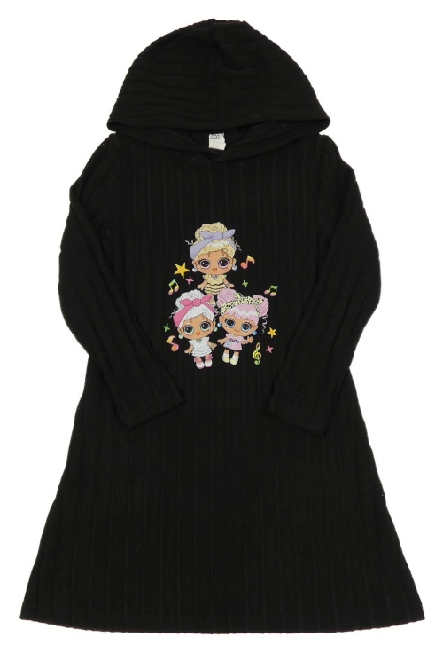 Černé žebrované úpletové šaty s kapucí - LOL