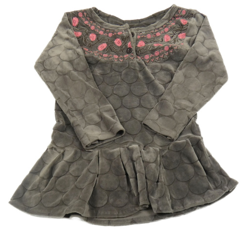 Tmavošedohnědé vzorované plyšové šaty s kytičkami