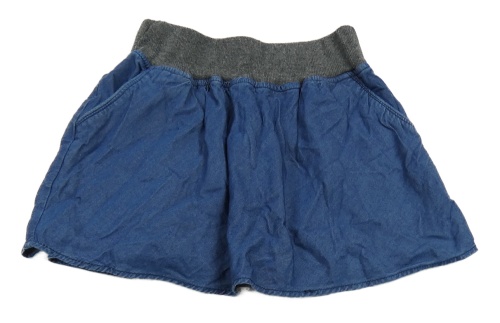 Modrá sukně s tmavošedým pasem a kapsami