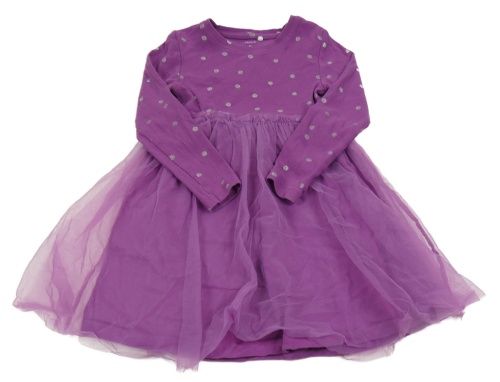 Fialové žebrované puntíkaté šaty s tylem Name it