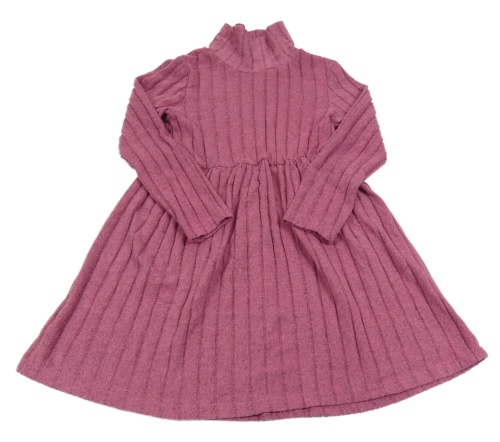 Tmavorůžové žebrované úpletové šaty se stojáčkem