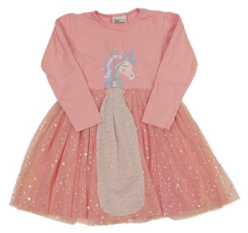 Růžovo-bílé bavlněno/tylové šaty s jednorožcem Infinity Kids