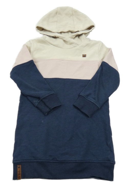 Tmavomodro-světlerůžovo-smetanové melírované teplákové šaty s kapucí Topolino