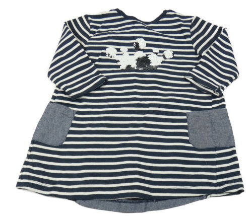 Tmavomodro-bílá pruhovaná tepláková tunika s korunkou z flitrů Vertbaudet