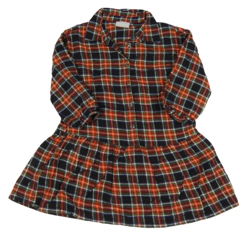 Tmavomodro/zeleno/oranžovo-zlaté kostkované košilové šaty Matalan