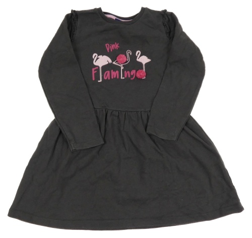 Tmavošedé teplákové šaty s plameňáky a nápisem Lupilu