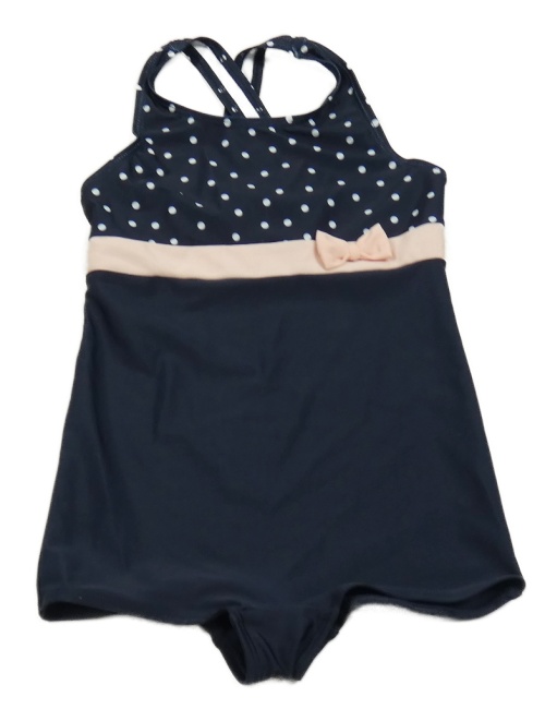 Tmavomodro-bílo-růžové jednodílné plavky s puntíky a mašlí Topolino