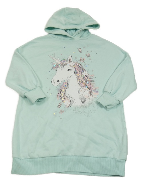 Mátové teplákové šaty s jednorožcem s flitry a kapucí Next