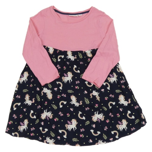 Růžovo-tmavomodré bavlněno/lehké šaty s jednorožci Alive