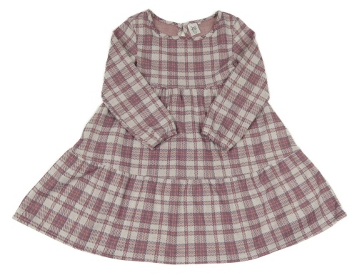 Světlešedo-starofialovo/růžové kostkované vzorované úpletové šaty POCOPIANO