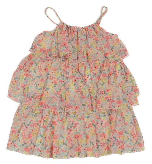 Smetanové vrstvené šifonové letní šaty s kytičkami H&M