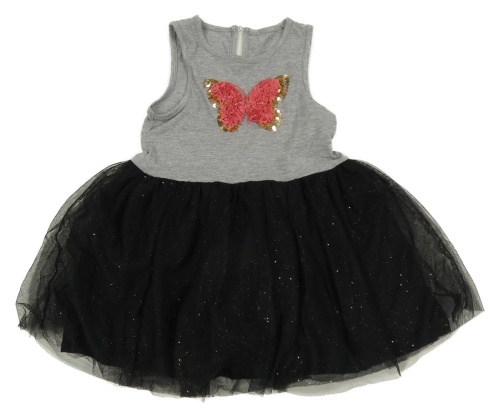 Šedo-černé bavlněno/tylové šaty s motýlem