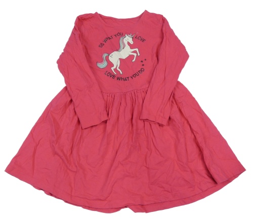 Tmavorůžové bavlněné šaty s jednorožcem a nápisem