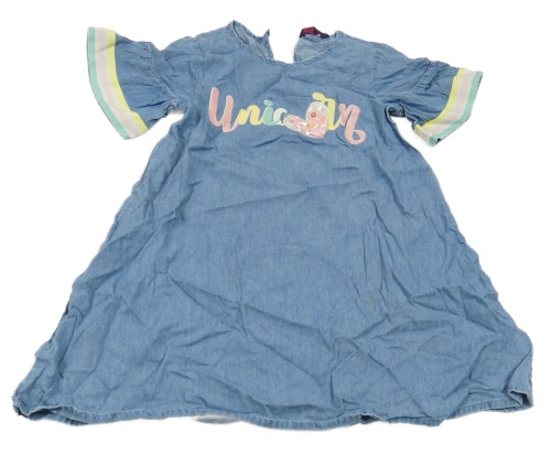 Světlemodré lehké šaty riflového vzhledu s barevným nápisem