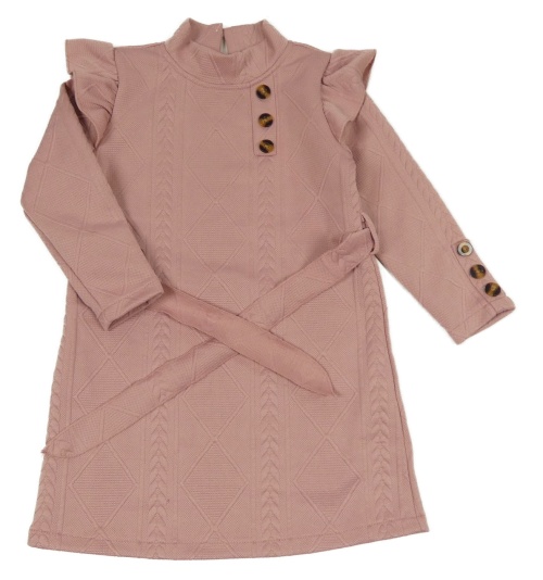 Starorůžové vzorované šaty s volánky a páskem