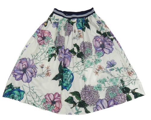 Bílá plátěná sukně s květinami
