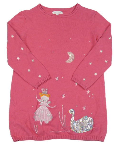 Tmavorůžové svetrové šaty s vílou a labutí a flitry Bluezoo