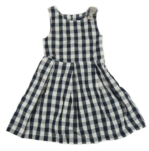 Tmavomodro-bílé kostkované plátěné šaty s mašlí KIABI