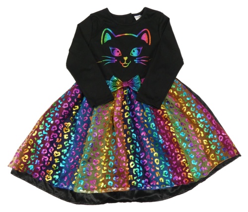 Černé šaty s kočkou a tylovou vzorovanou barevnou sukní