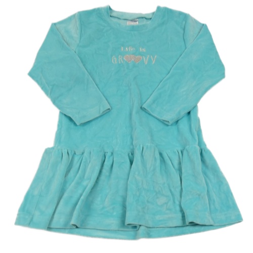 Tyrkysové plyšové šaty nápisem a srdíčky
