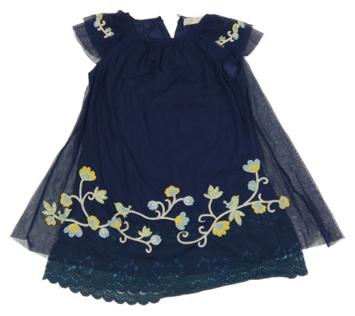 Tmavomodré tylové šaty s rozkvetlými větvičkami a ptáčky a krajkou Zara