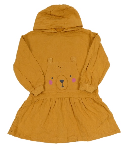 Medové teplákové šaty s kapsou s medvědem a kapucí George