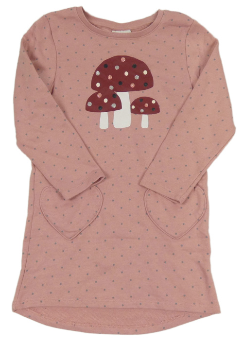 Růžové puntíkaté teplákové šaty s houbami Topolino