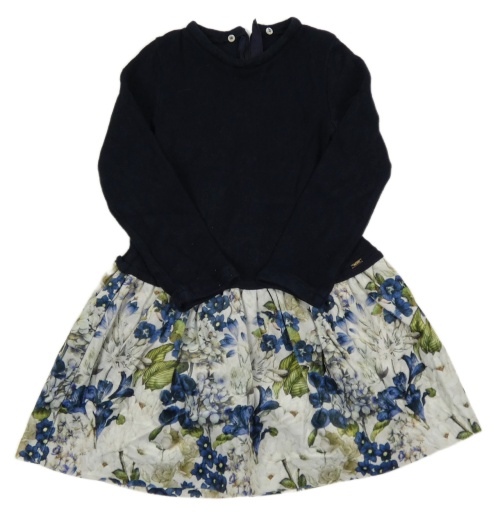 Tmavomodro-bílé pleteno/plyšové šaty s kytičkami Mayoral