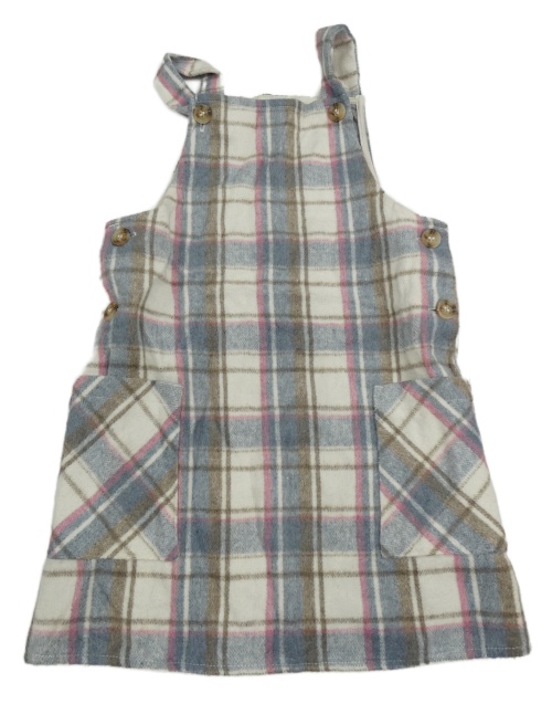 Smetanovo-modrošedo-hnědo-růžové kostkované vlněné šaty PRIMARK