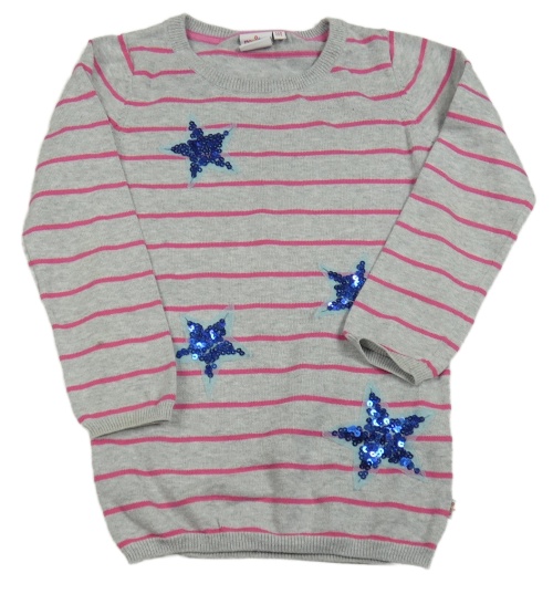 Šedo-růžové pruhované svetrové šaty s hvězdičkami z flitrů