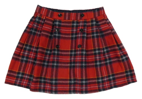 Červeno-černo-bílá kostkovaná vlněná sukně s knoflíky Tu