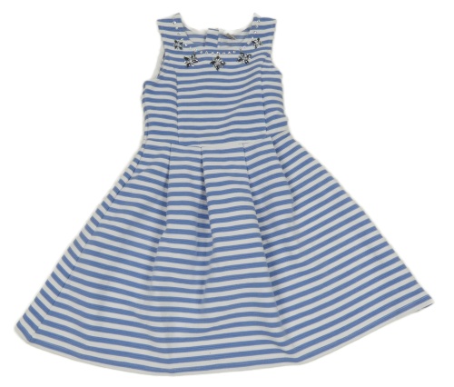 Modro-bílé pruhované žebrované šaty s kamínky Tu