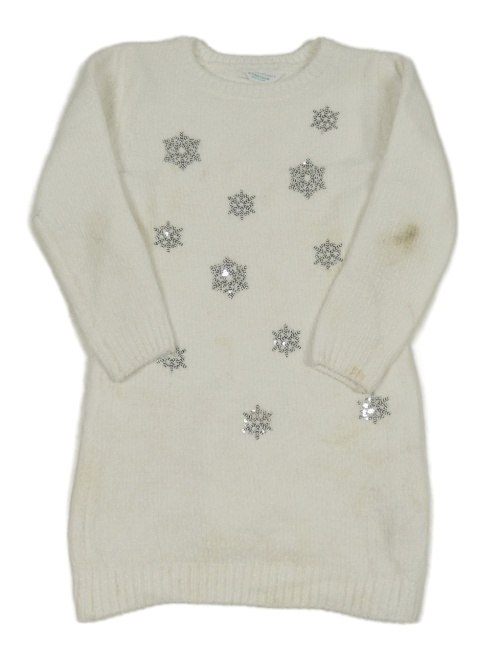 Bílé žinylkové svetrové šaty s vločkami z flitrů PRIMARK