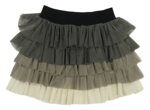 Tmavošedo-šedo-béžová tylová vrstvená sukně