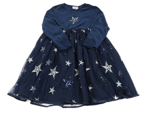 Tmavomodré plyšovo/tylové šaty s hvězdičkami s flitry Topolino