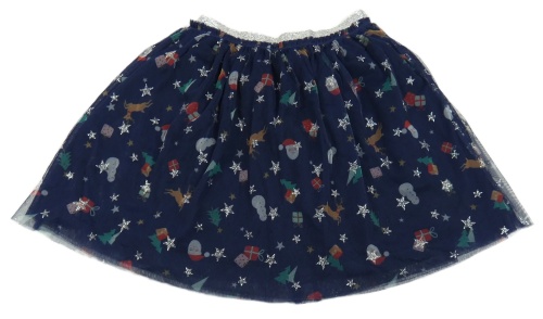 Tmavomodrá tylová sukně s vánočními obrázky Tu