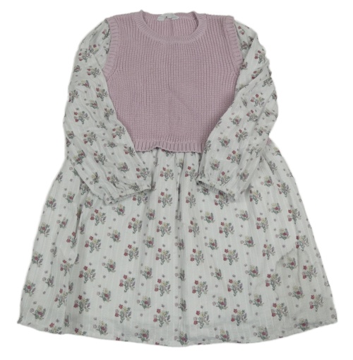 Bílé žebrované/vzorované šaty s kytičkami a lila svetrovou vestou PRIMARK